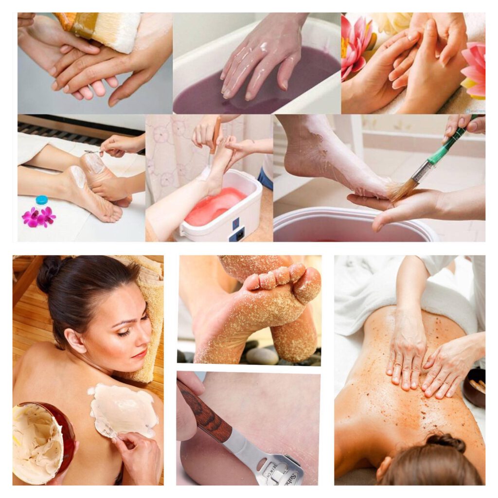 4. Foot care: exfoliation, heel scrub + foot massage + foot mask